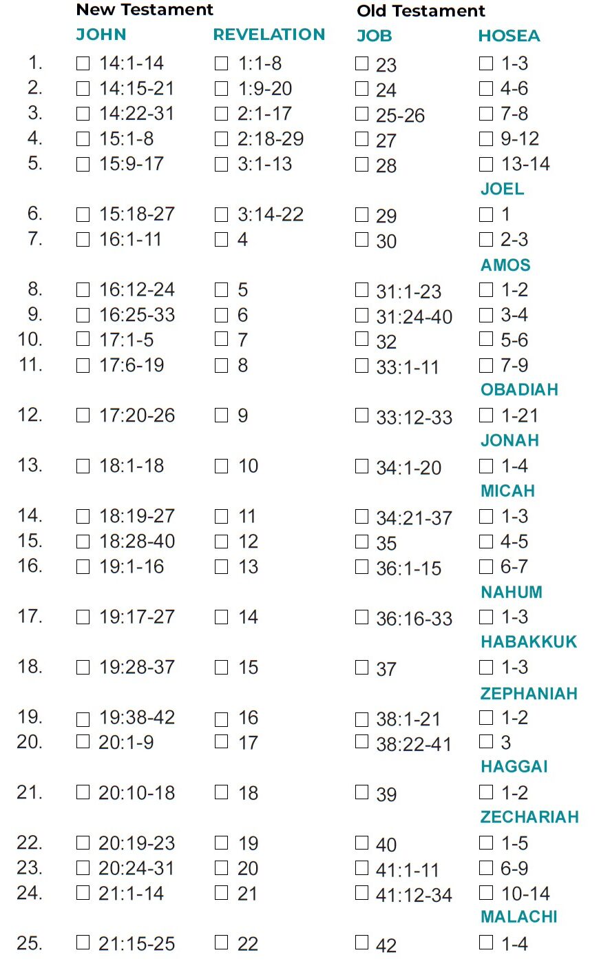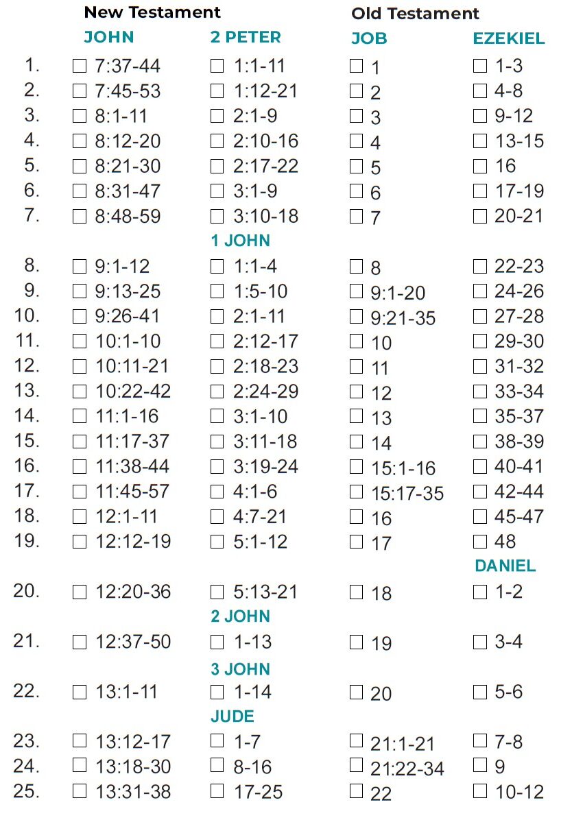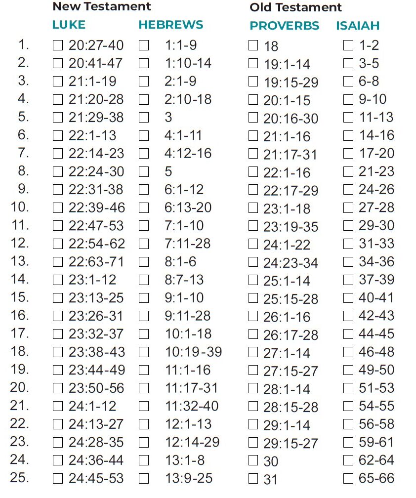 - If you finish the month’s readings by the twenty-fifth, you could use the final days of the month to study the passages that challenged or intrigued.