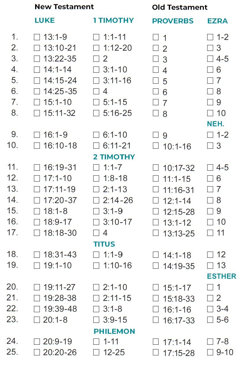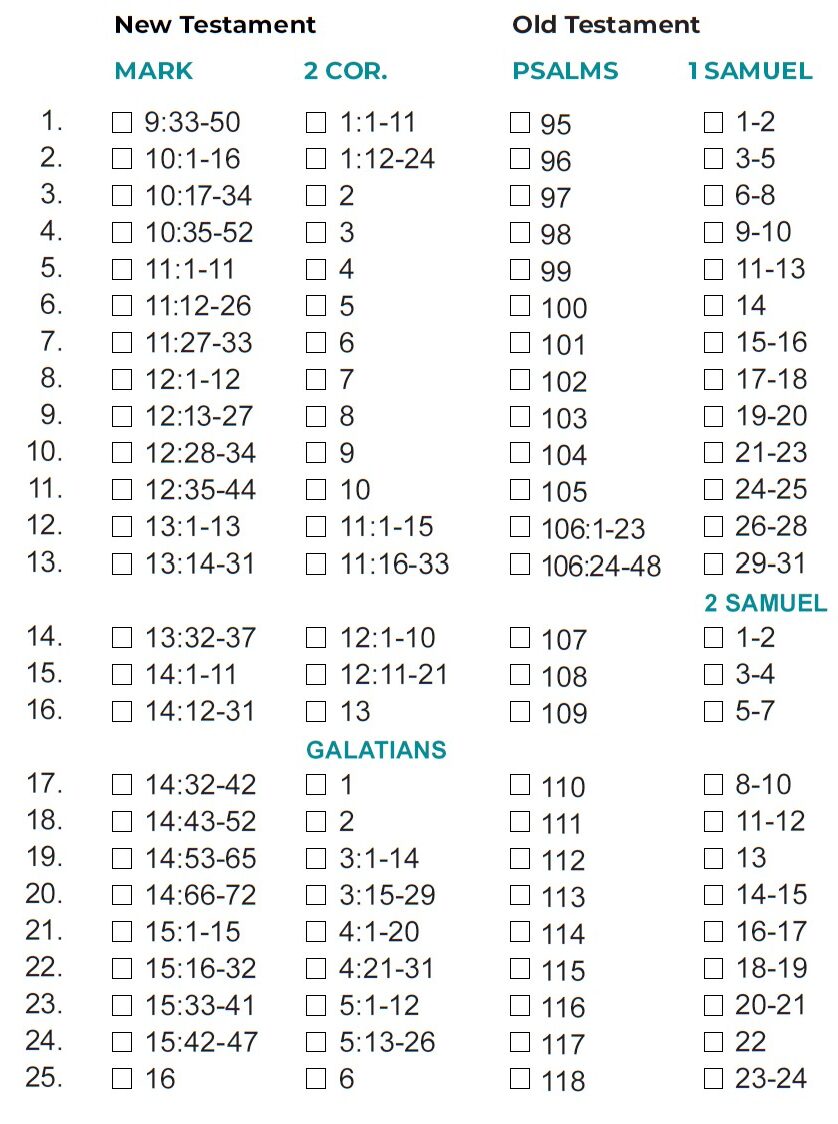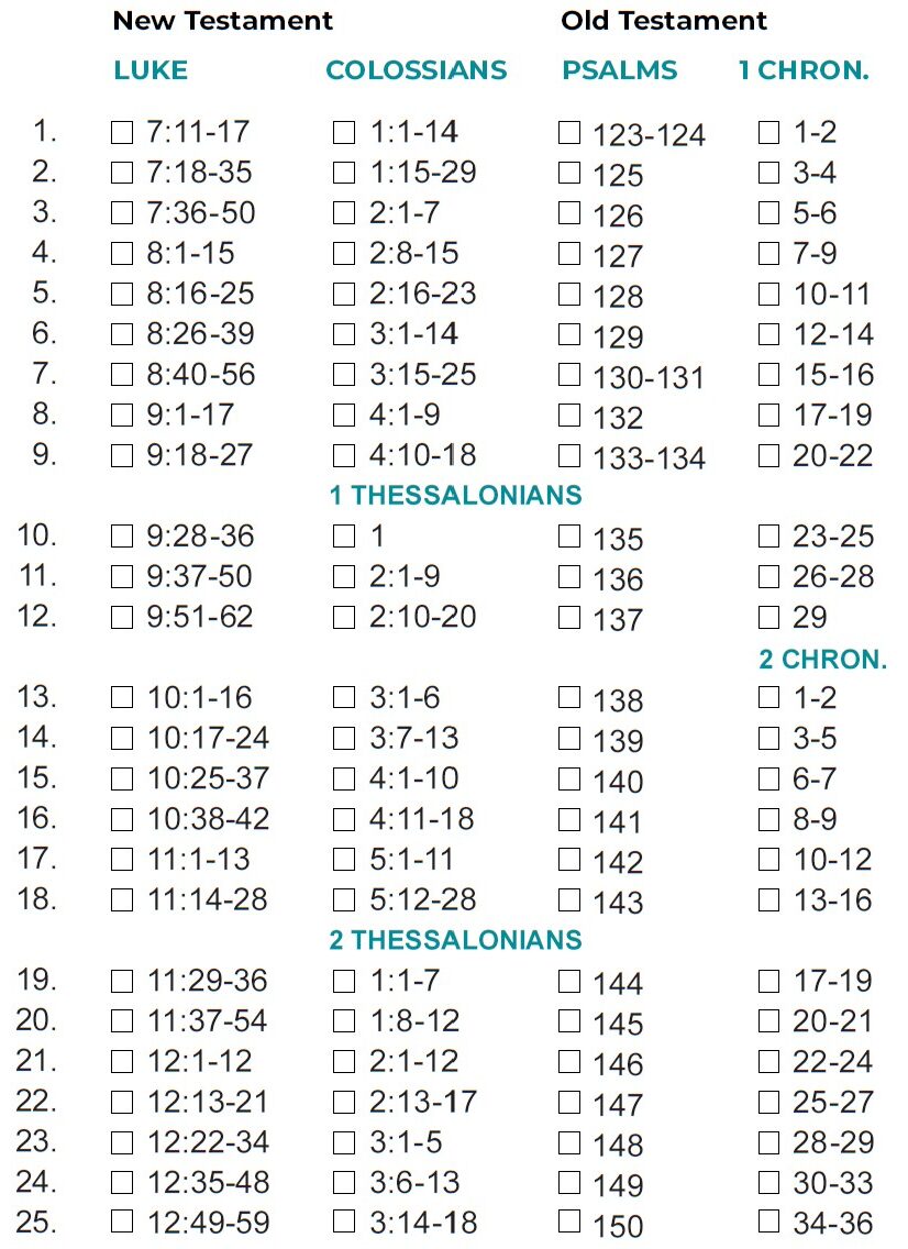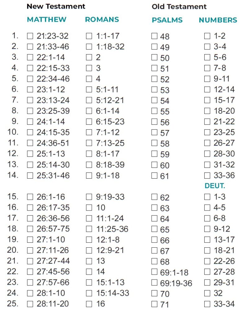 - If you finish the month’s readings by the twenty-fifth, you could use the final days of the month to study the passages that challenged or intrigued.